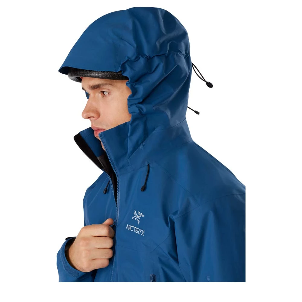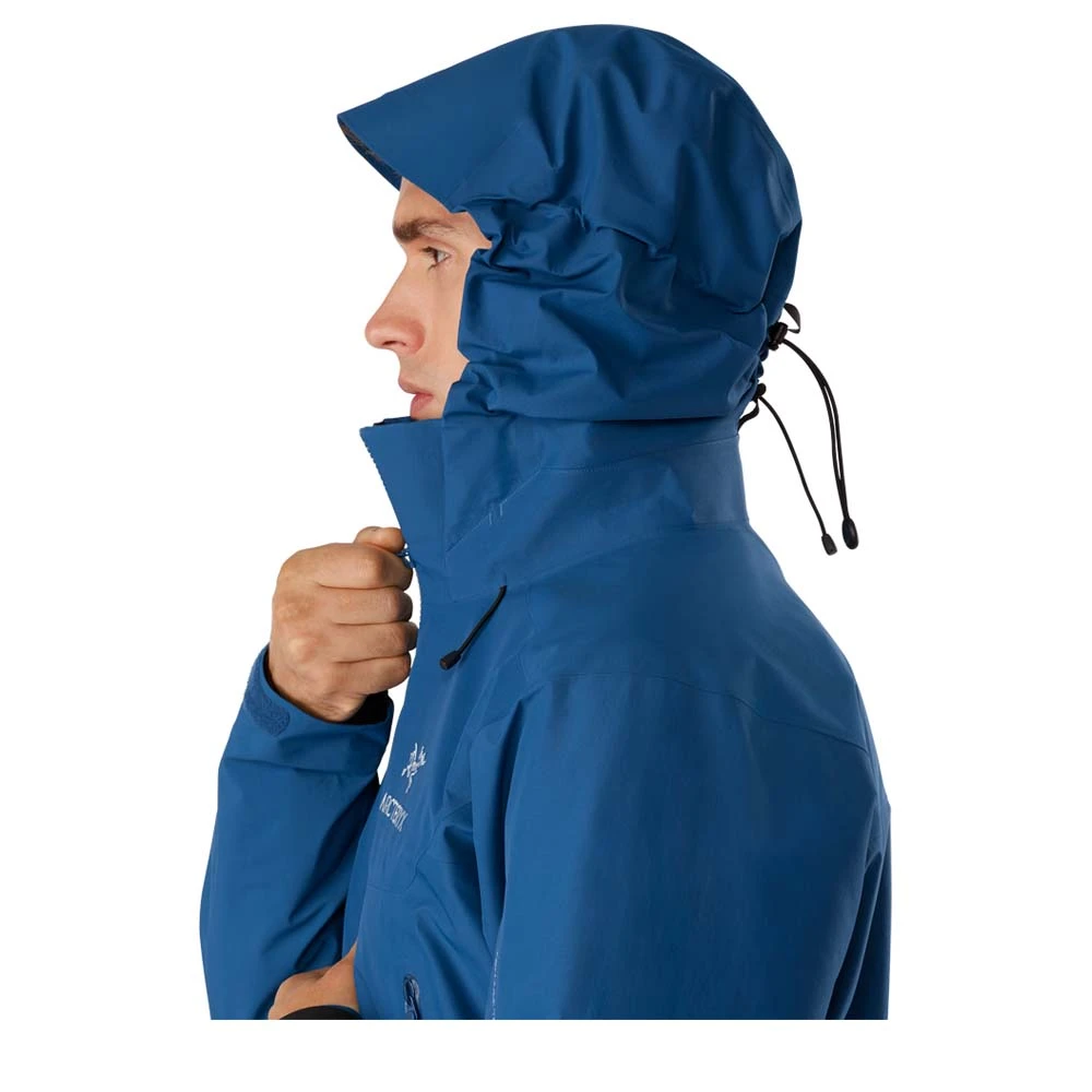 Die Beta AR verfügt über verschiedene, clever konstruierte Funktionen. So passt unter die DropHood-Kapuze ein Helm und sie lässt sich an Bündchen in zwei Richtungen verstellen. Der Cohaesive-Kordelzug am Saum lässt sich selbst mit Handschuhen umstandslos verstellen und ist besonders robust. Die beiden Reißverschlusstaschen sind so angebracht, dass sie selbst mit Becken- oder Klettergurt gut erreichbar sind und der körpernahe Schnitt verhindert ein Hochrutschen der Jacke bei schweren Lasten.