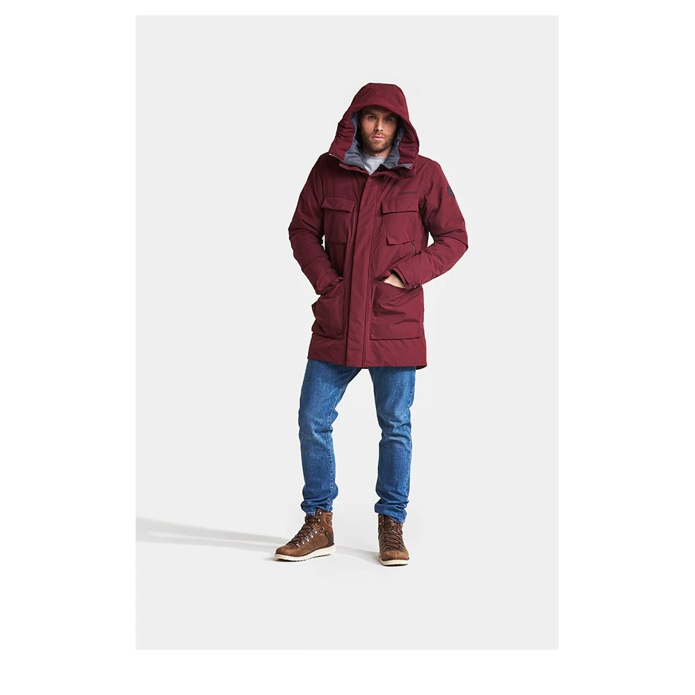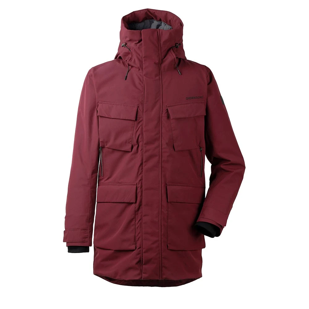 Didriksons Drew ist ein traditioneller Winterparka, der wind- und wasserdicht ist, mit verschweißten Nähten und aus atmungsaktivem Stoff. Es hat sechs Taschen, zwei mit Reißverschluss. Drew hat eine feste Kapuze, die vorne und hinten verstellbar ist, und eine praktische Innentasche. Mit flexiblem Zweiwege-Frontreißverschluss mit schützender Sturmlasche. Der hohe Kragen schützt vor Wind und Regen. Drew hat verstellbare Kordelzüge an Taille und Saum für eine optimale Passform. Gerippte Manschetten mit Daumenlöchern sorgen für zusätzliche Isolierung. Das Futter wurde im Lösungsfärbeverfahren eingefärbt. Diese Technik reduziert den Wasser-, Energie- und Chemikalienverbrauch während der Produktion. PFC-freie, wasserabweisende Ausrüstung.