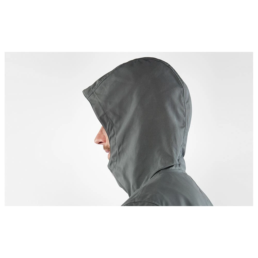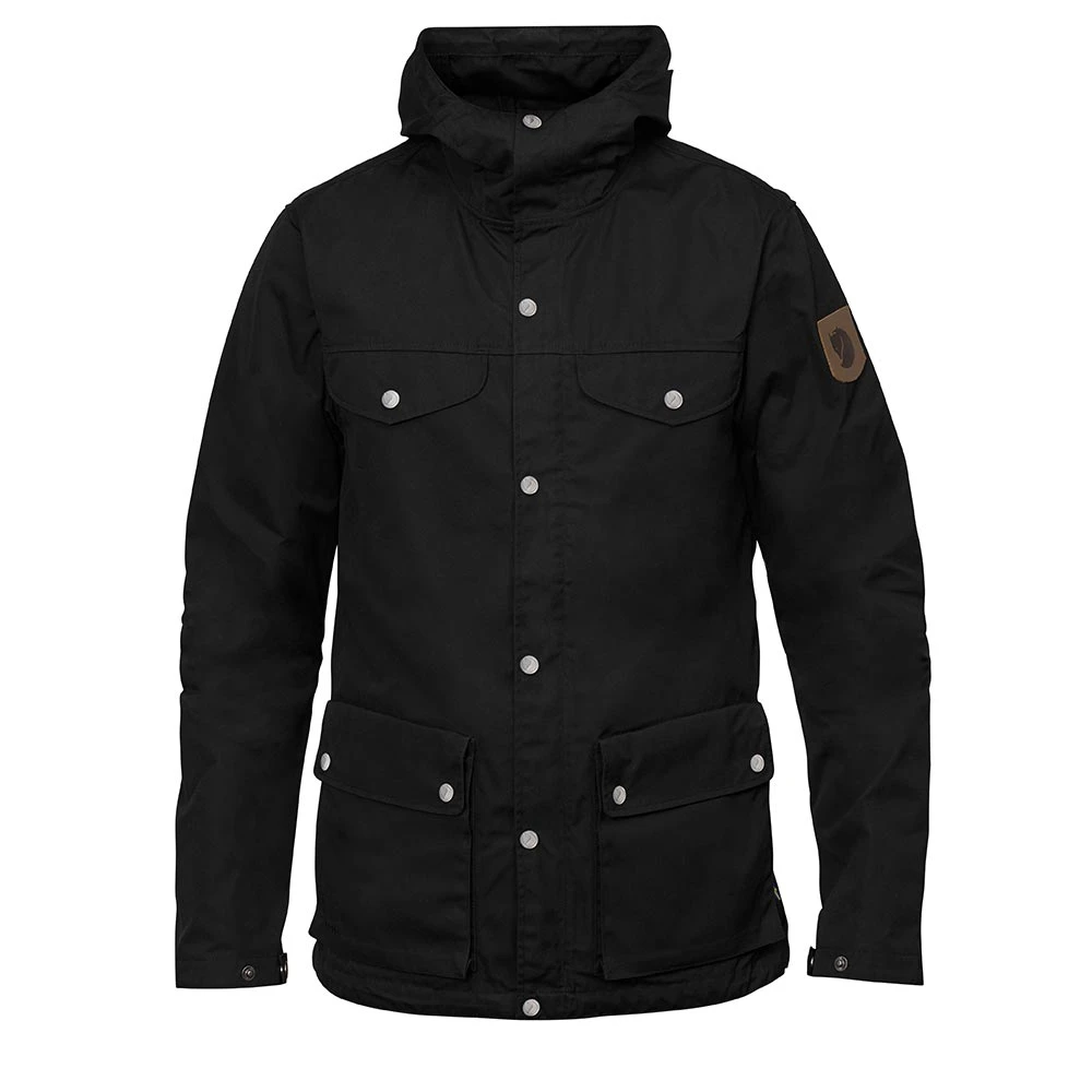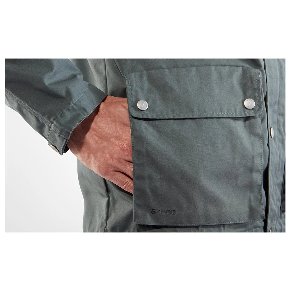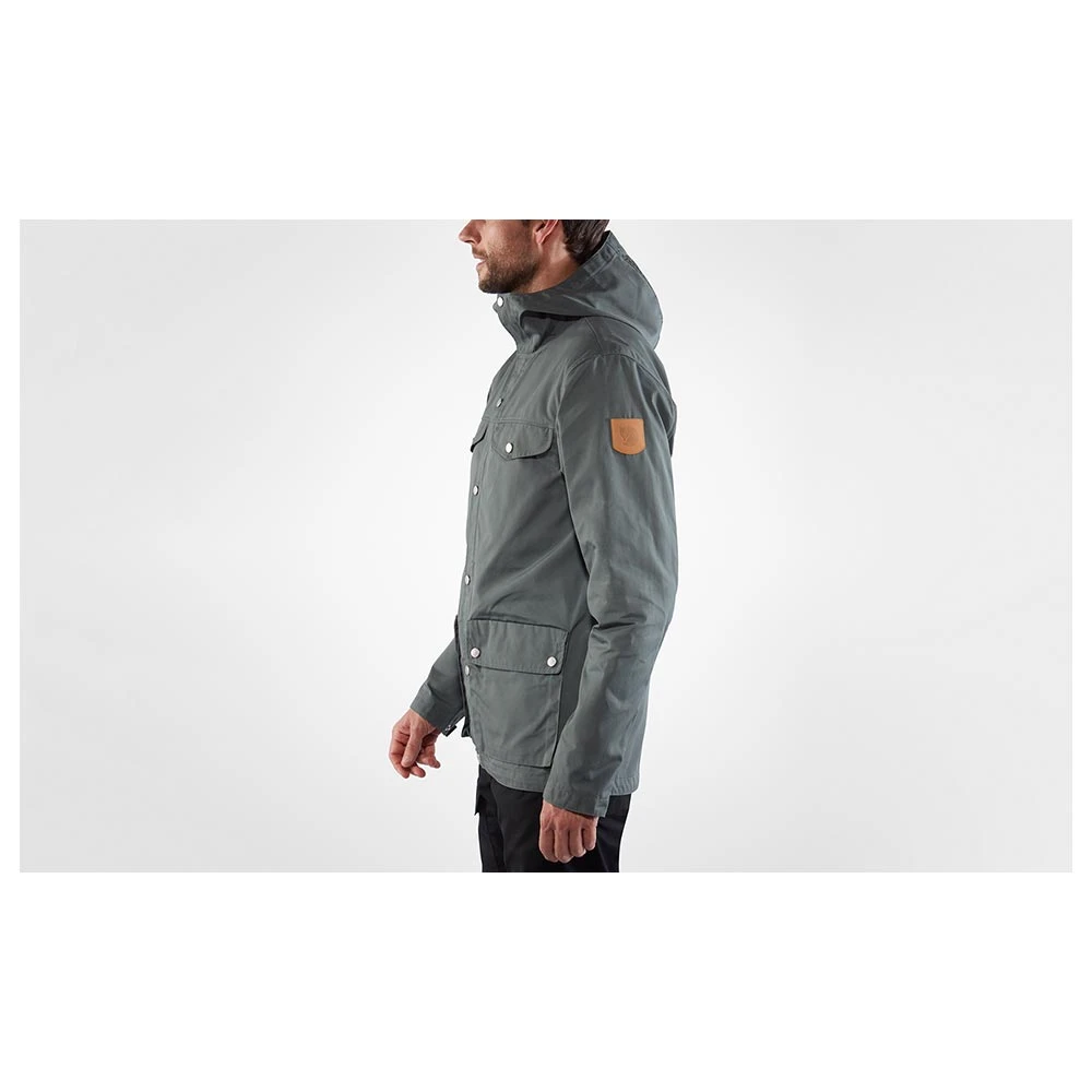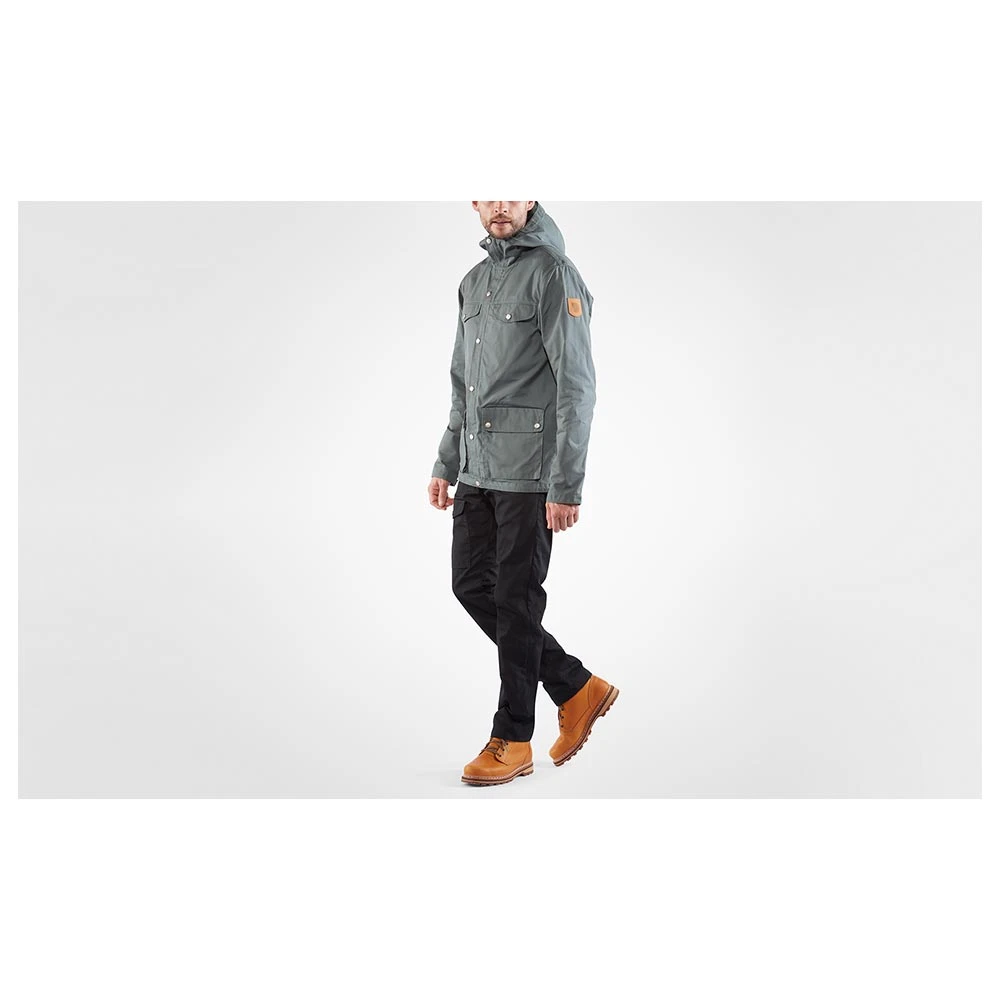 Die FJÄLLRÄVEN Greenland Jacket Men: Die klassische Jacke von Fjällräven im Retro-Stil mit Verstärkungen an den Ellenbogen und in der Schulterpartie. Sie verfügt über eine feste Kapuze, einen Zweiwegereißverschluss vorn mit Abdeckung und Knöpfen. Außerdem hat sie 5 größere Taschen, die zum Verstauen dienen. Ihre wasserabweisenden Eigenschaften können durch Greenland Wax verstärkt werden, wasauch die Haltbarkeit des bereits sehr strapazierfähigen Materials, dem haltbaren, wind- und wasserabweisenden G-1000 Eco, erhöht.