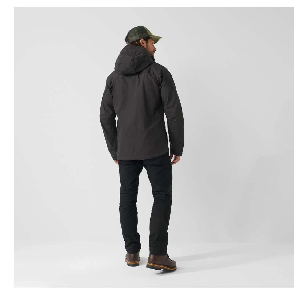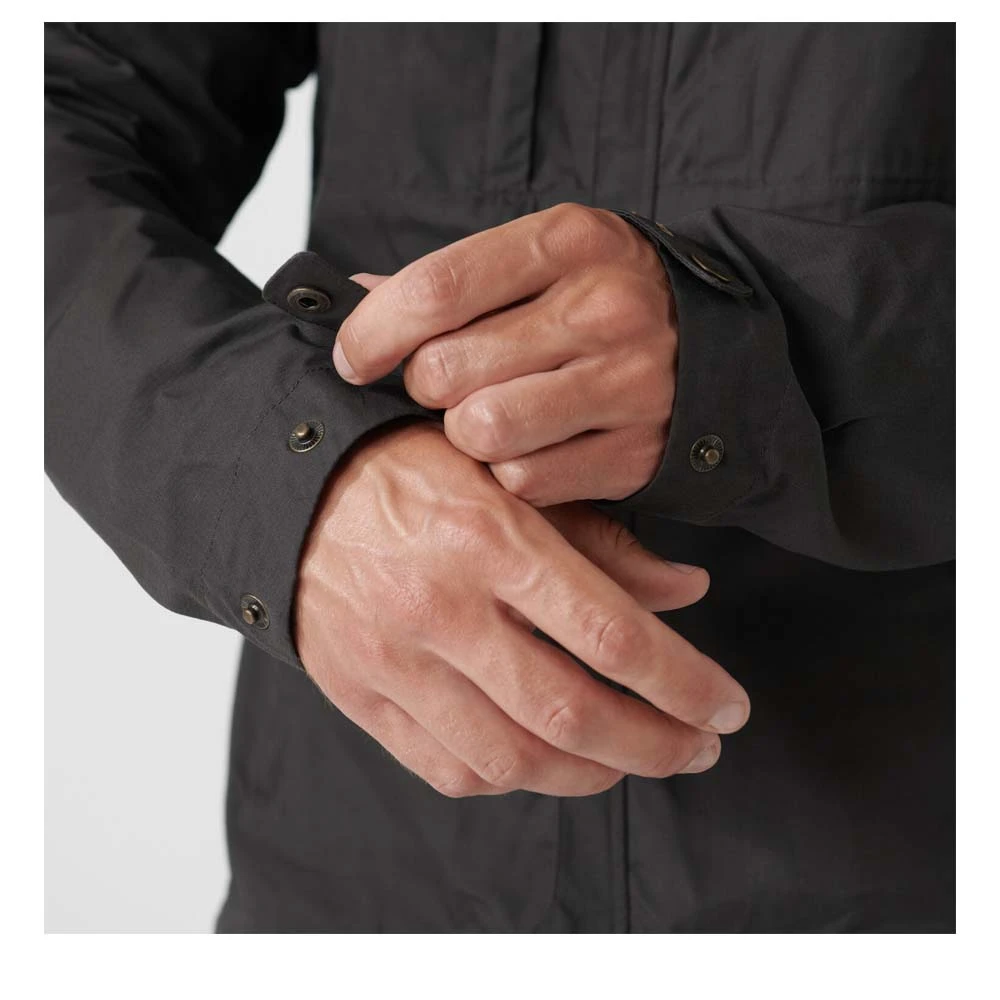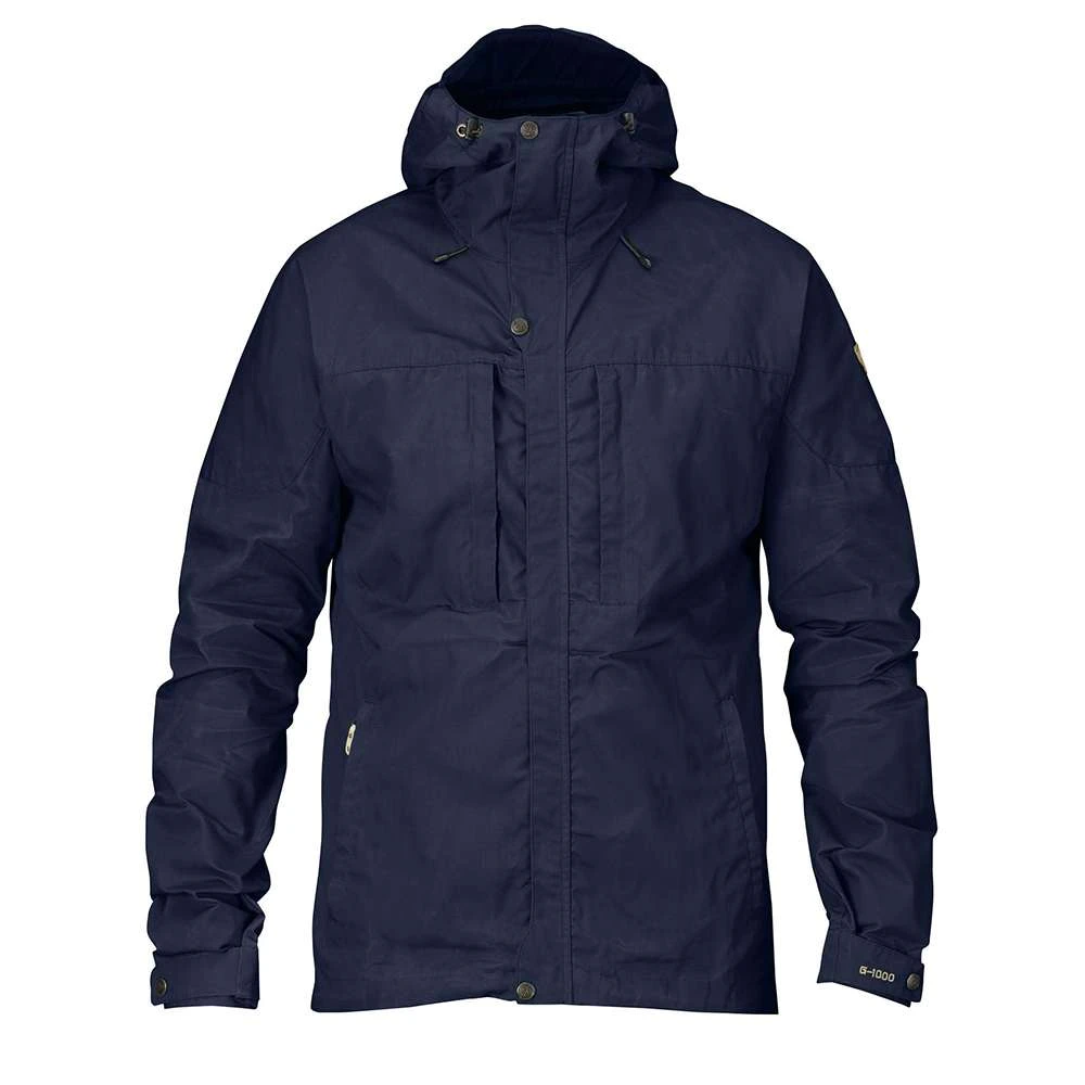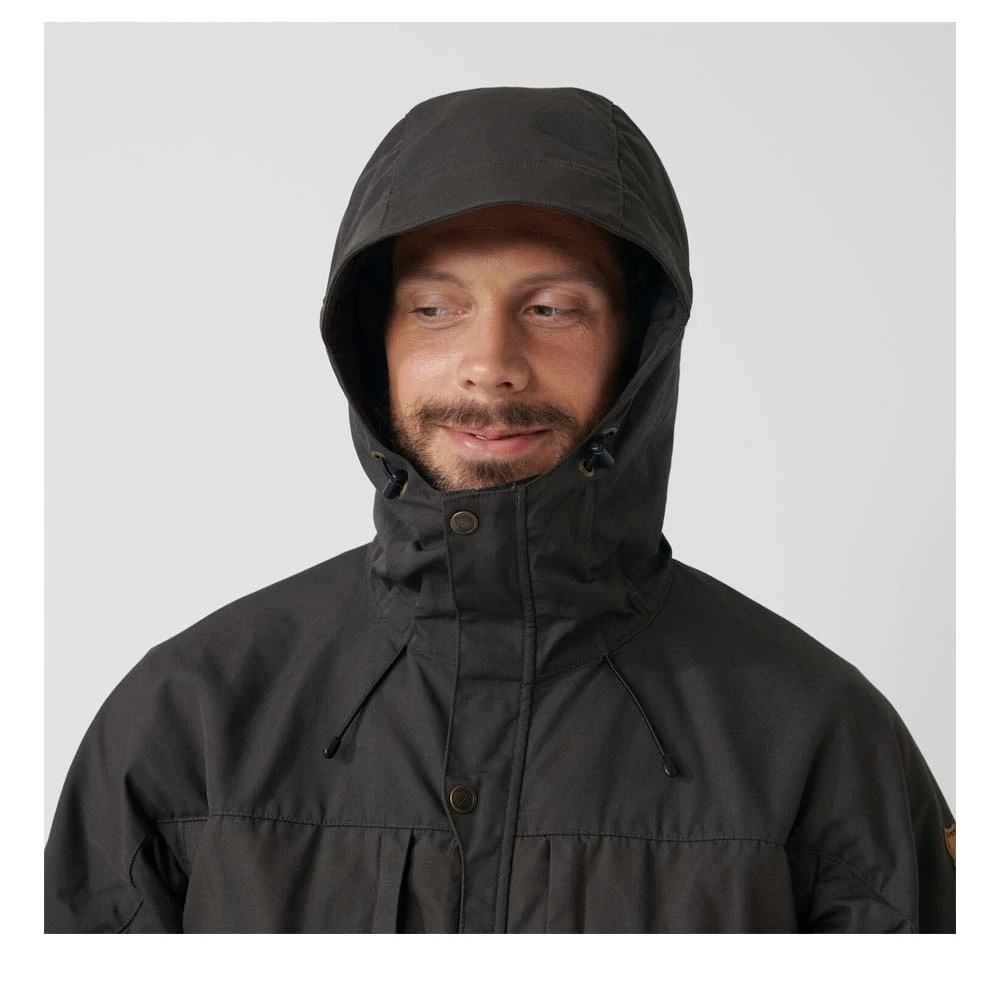 Die Skogsö Jacket von FJÄLLRÄVEN ist eine hüftlange Funktionsjacke aus G-1000® Lite mit tiefem Saum, mit fester, regulierbarer Kapuze und Schulterpartie aus G-1000® Original und einer verlängerten Rückenpartie. Sie schützt vor Wind und leichten Schauern, während das Material gleichzeitig sehr atmungsaktiv ist. Zwei vertikale Brusttaschen und zwei Eingrifftaschen ergänzen das Angebot der Skogsö Jacket.