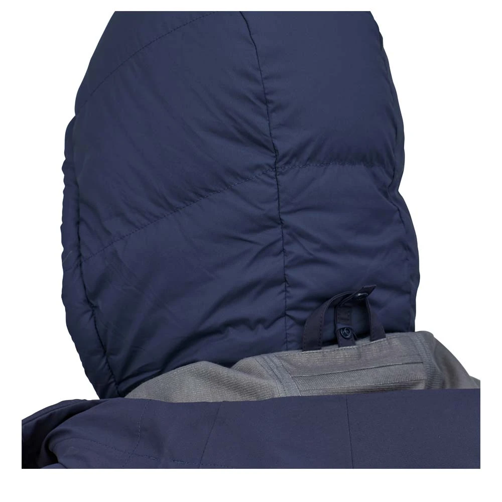 - Angenähte, regulierbare Schirmkapuze; Front-Reißverschluss mit außen- und innenliegenden Windleisten; Reißverschlusskragen mit Mikrofleece am Kinn; regulierbare Bündchen