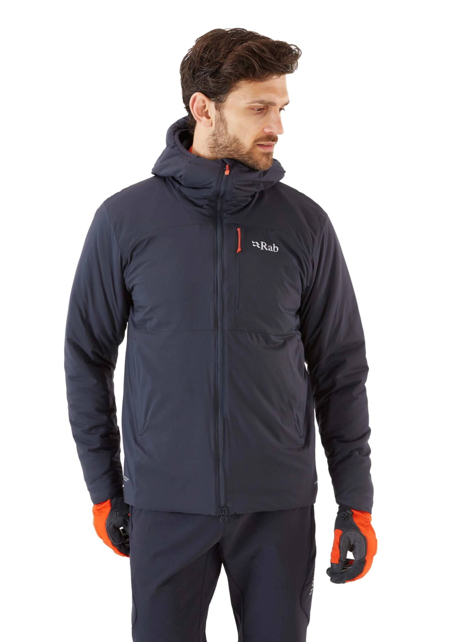 Die Xenair Alpine von RAB ist eine atmungsaktive Winterjacke für Herren, die Sie dank ihres körpernahen Isoliermaterials wärmt. Neben der Wärmespeicherung hilft das Isoliermaterial zudem bei der Temperaturregulierung, weshalb die Jacke auch bei anstrengerenden Kletter- oder Wandertouren eingesetzt werden kann. Die Kapuze ermöglicht das Tragen eines Helms, da diese teils weitenregulierbar ist und der Helm so problemlos untergezogen werden kann.