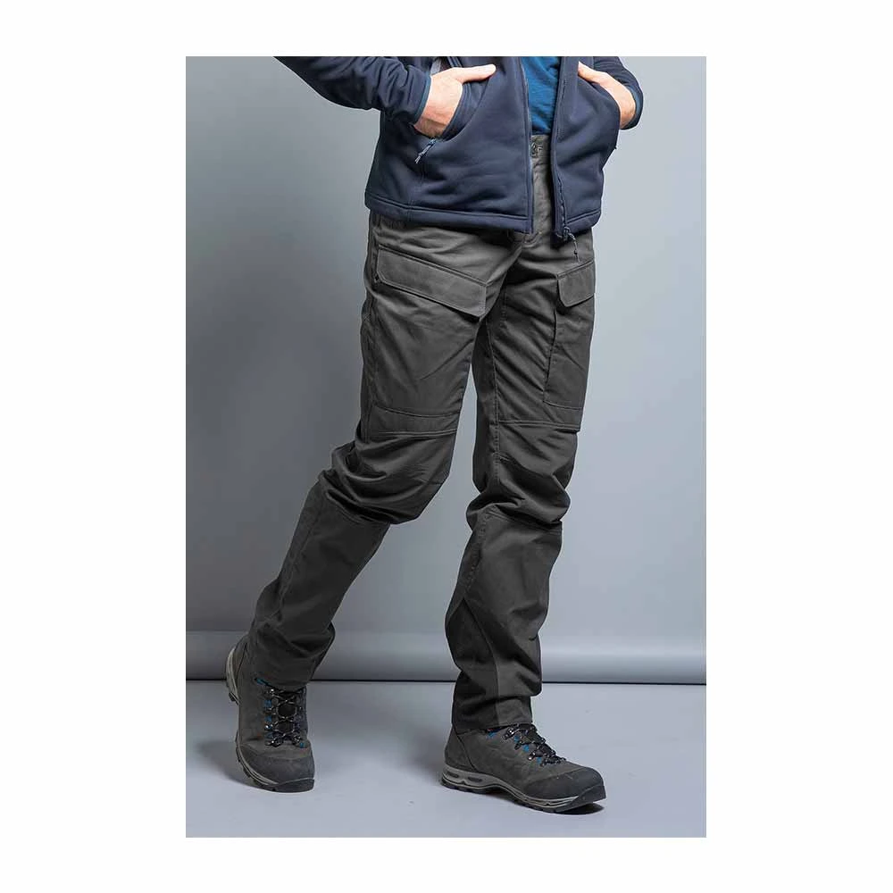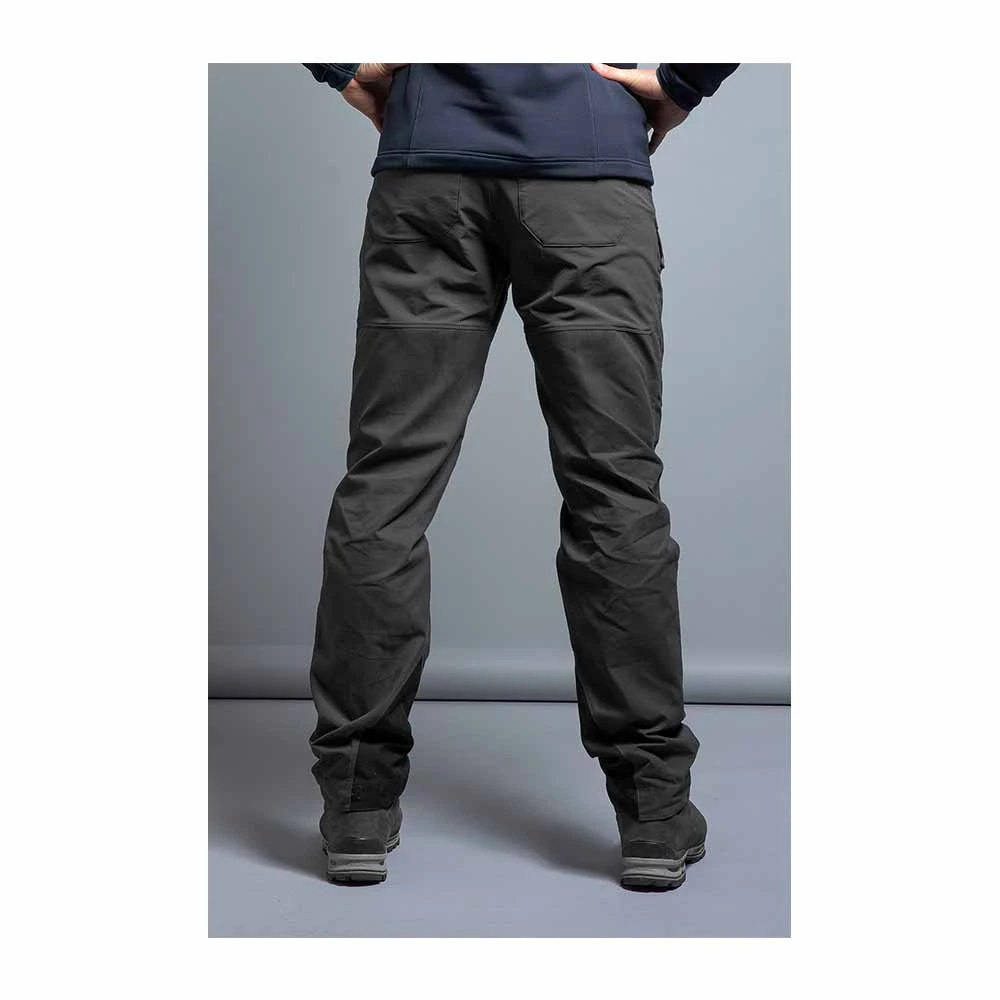 Die Trekking M’s Pants RECCO sind aus robustem T-ECO Polycotton (65% Polyester recycelt, 35% Bio-Baumwolle) gefertigt und bieten einen hohen Tragekomfort. Sie hat elastische Softshell-Einsätze an den Knien und am Gesäß für optimale Bewegungsfreiheit und einen Cordura-Einsatz an den inneren Beinabschlüssen zum Schutz vor Beschädigungen. Die Travel M’s Pants RECCO verfügt über Seitentaschen, zwei Gesäßtaschen und Taschen auf den Oberschenkeln. In den Hosensaum kann eine elastische Kordel gezogen werden, um die Hose über den Wanderstiefeln zu fixieren. Der RECCO-Reflektor ermöglicht es Rettungsorganisationen, vermisste Personen im Gebirge oder in unwegsamem Gelände schnell zu orten. Mit dem GREEN-Label werden Produkte gekennzeichnet, bei denen nachhaltige, umweltfreundliche und ressourcenschonende Materialien eingesetzt wurden. Die Hose wird außerdem fair und transparent in Vietnam hergestellt.
